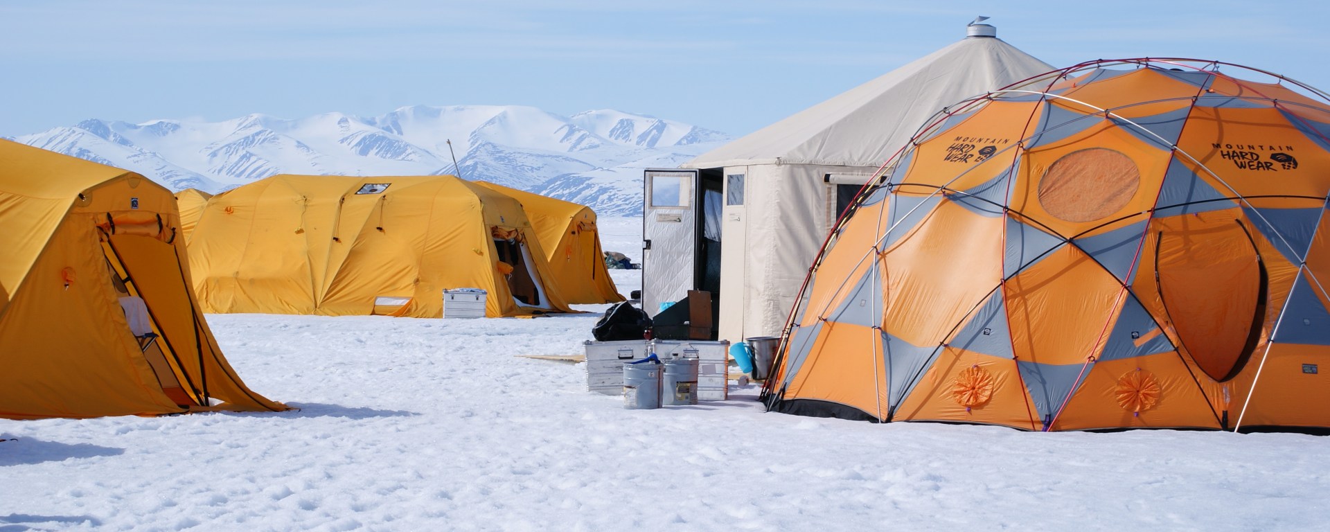 We were about 60 kilometres out over the sea off Pond Inlet on the floe edge. The camp came in to view like a mirage, in the middle of nowhere at 73 degrees north sitting on a stretch of ice, everywhere was watery and white.