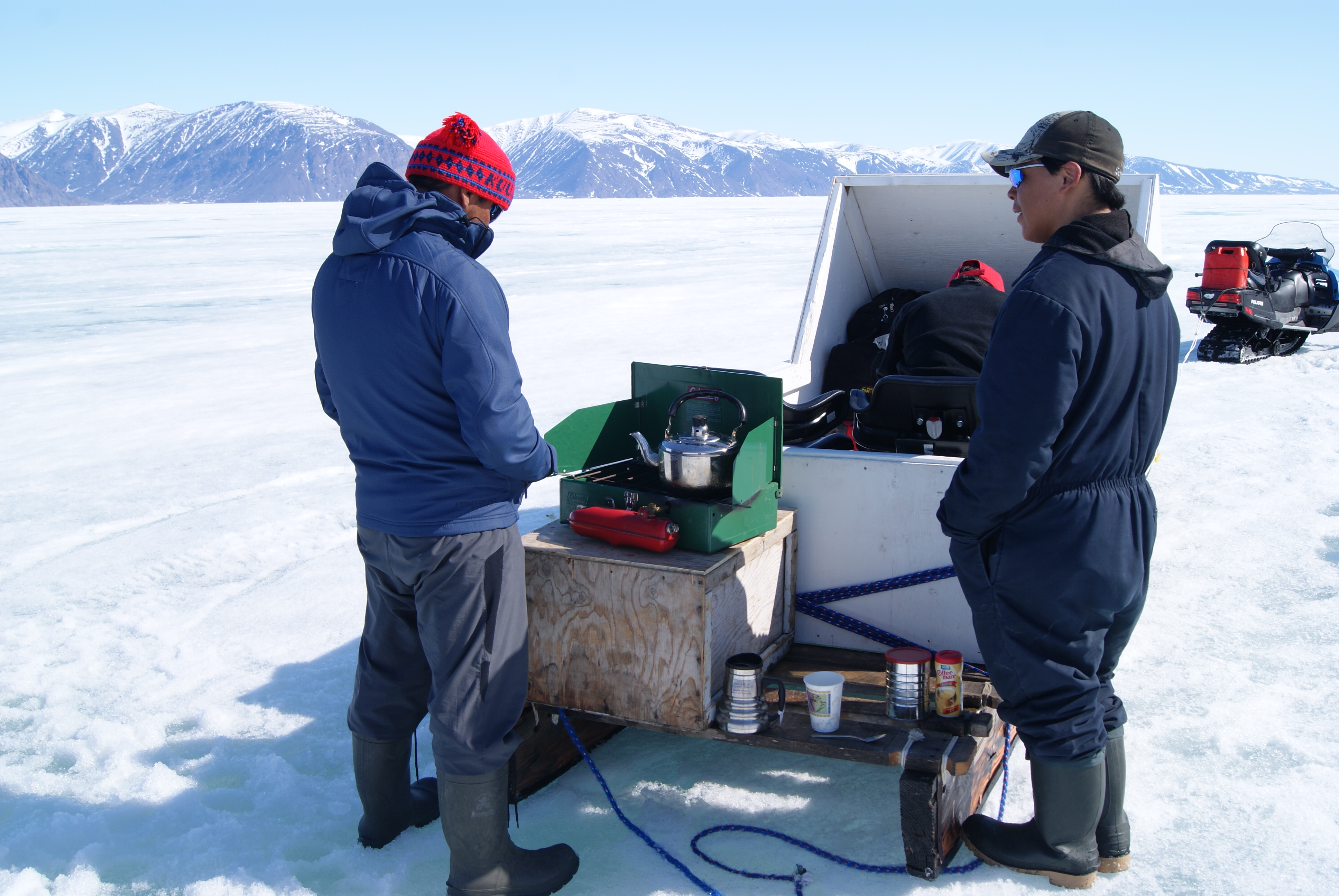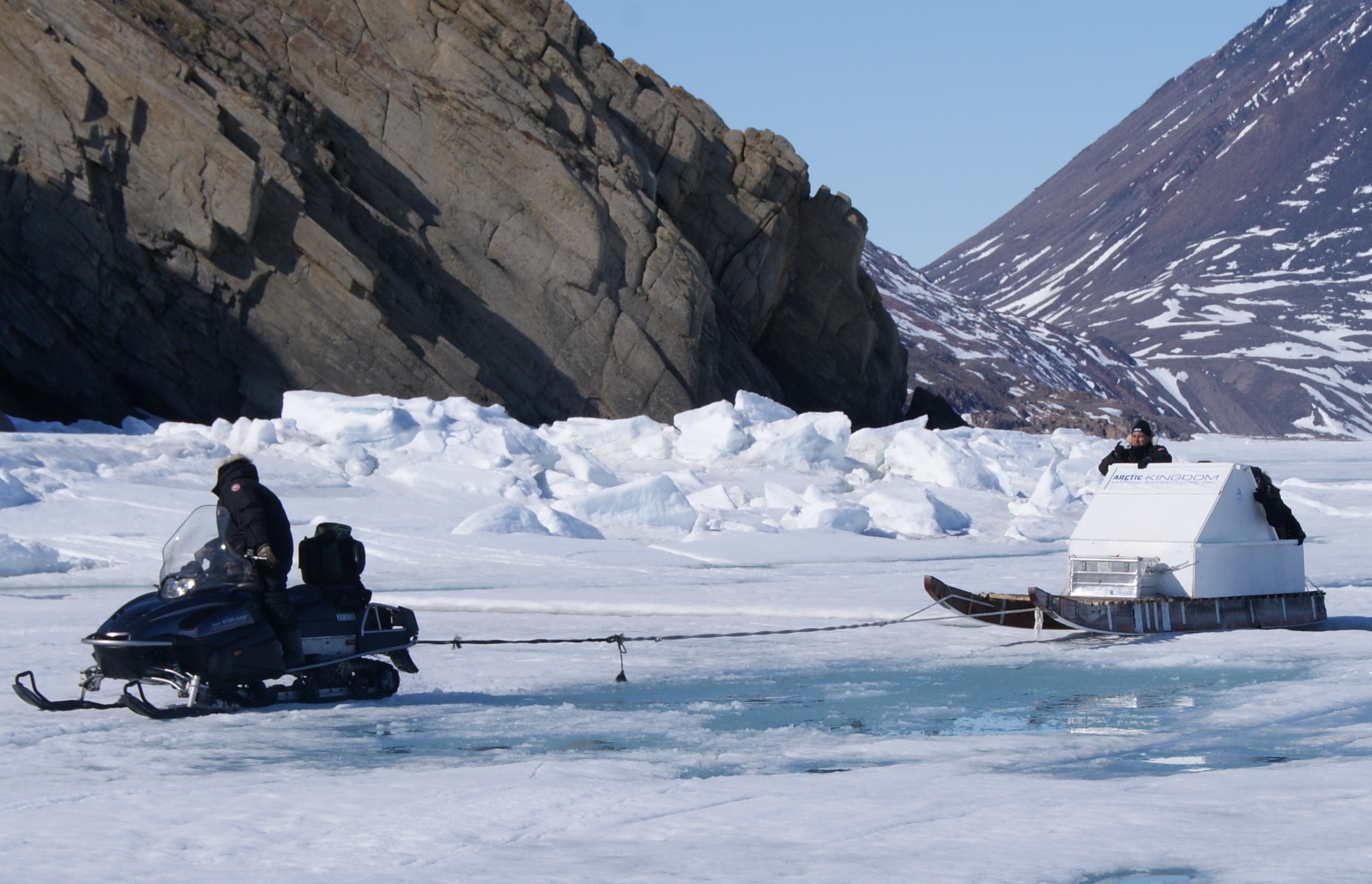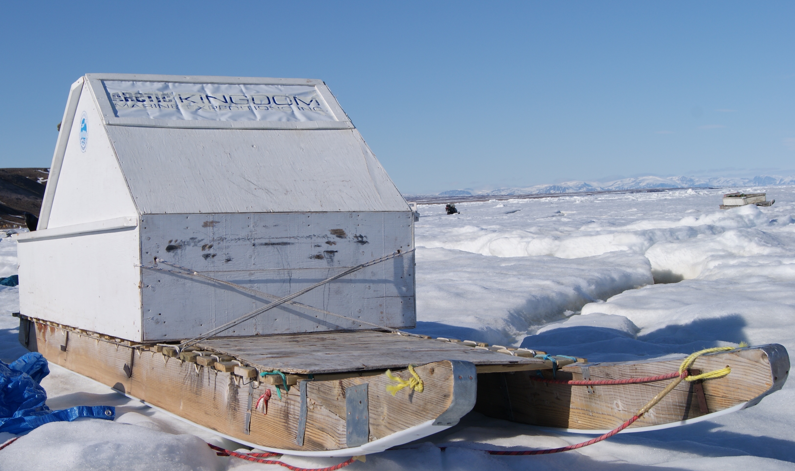 Three hours after we had left Pond Inlet, a small Inuit community at the top of Baffin Island, Nunavut, Canada we arrived at our very luxurious camp on the floe edge. It had been an exciting but extraordinarily uncomfortable trip sitting in a qamutik (traditional Inuit wooden sledge) being towed by a snowmobile for five hours.