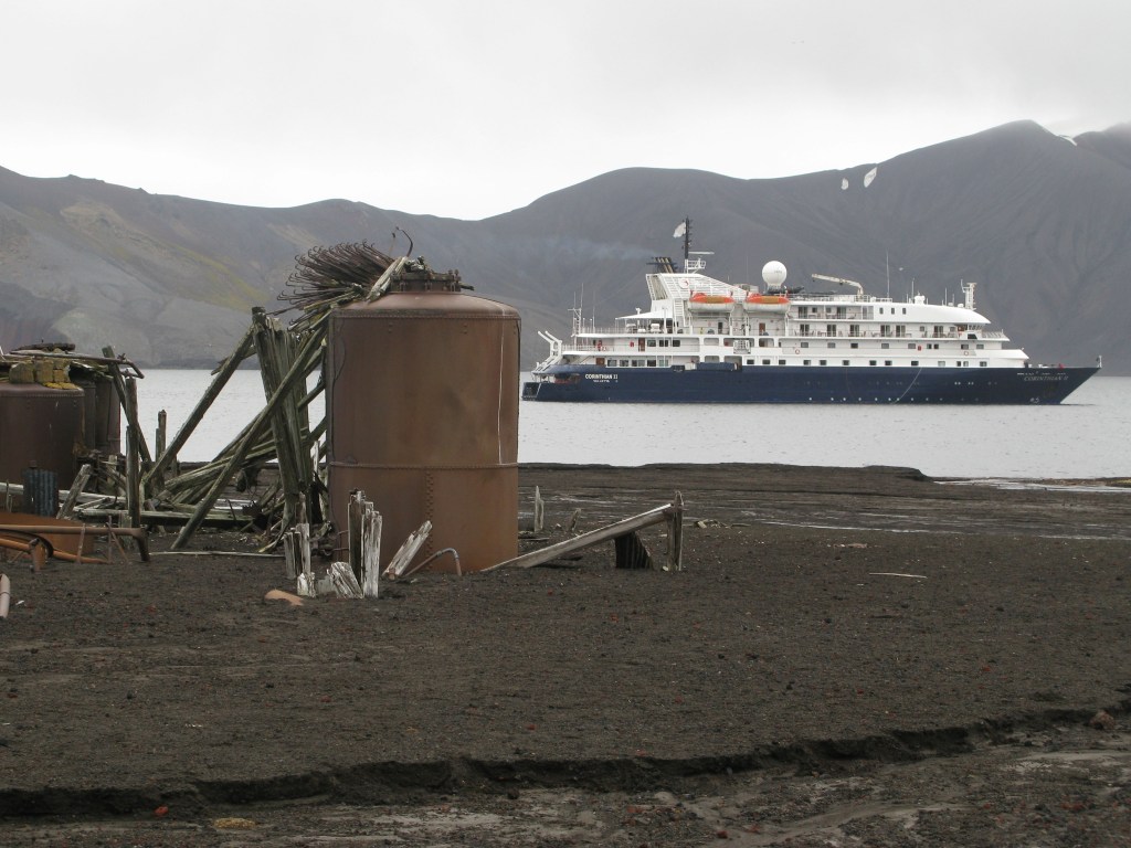 British sealers found the island in the early nineteenth century and within five years every seal in the vicinity was gone and the island abandoned. In the early twentieth century whalers took over using the sheltered bay as a successful whaling station for factory ships until the 1930’s. In 1908, the British government formally declared the island to be part of the Falkland Islands, then Argentina took over, but the only bases on the island for many years now have been scientific ones which are regularly destroyed by eruptions.