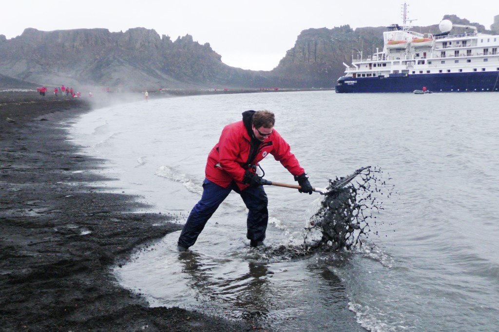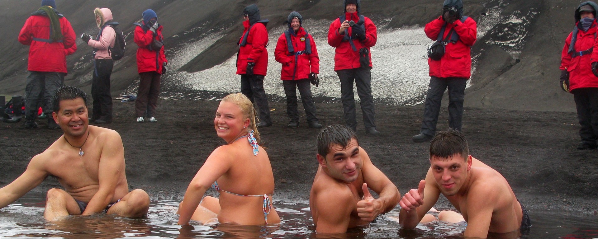 Walking along the black sandy beach, steam was rising and we could feel that the whole shoreline had underfloor heating. A frenzy of digging started and within a short time some of our more crazy souls had stripped down to their swimsuits and were having a natural spa! The trouble was that the water was so hot that a zodiac had to circle past very fast making waves to swish cold water into the pool to cool it down.